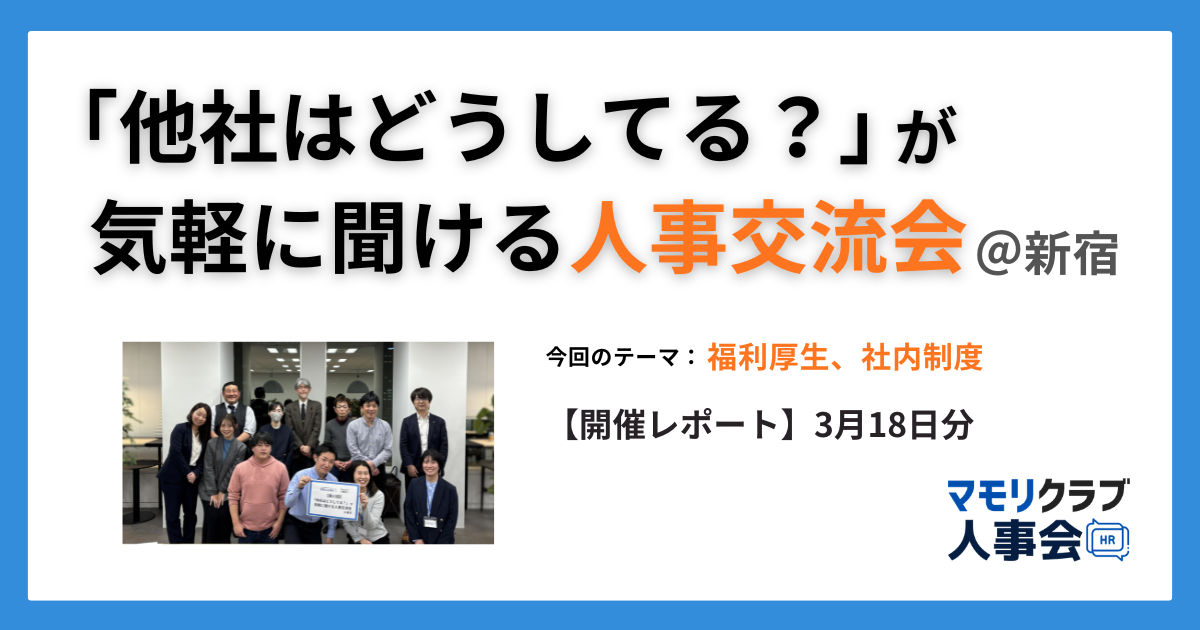 【第13回マモリクラブ人事会レポート】人事・採用の「他社はどうしてる?」が気軽に聞ける交流会|3/18(水)東京開催分