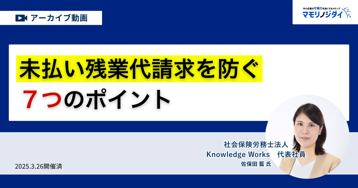 【アーカイブ動画】【無料】労務リスク対策特別セミナー「未払い残業代の請求を防ぐ7つのポイント」