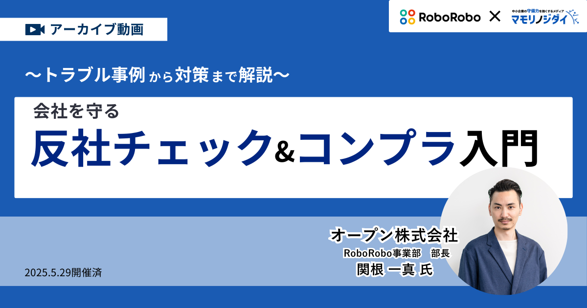 【アーカイブ動画】コスト0円で始める!会社を守る反社チェック&コンプラ入門〜トラブル事例から対策まで解説〜