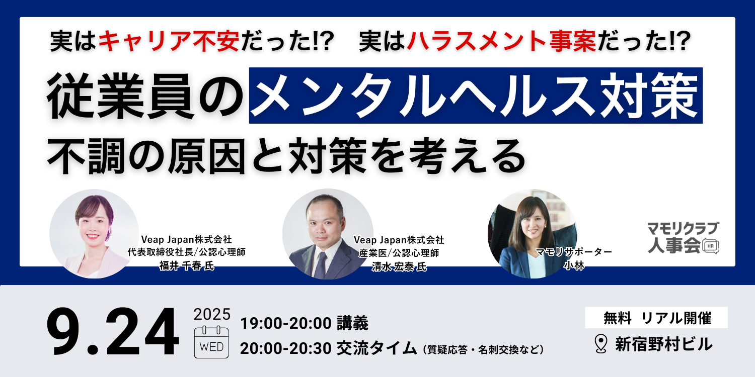 従業員のメンタルヘルス対策~不調の原因と対策を考える〜|9/24(水)開催