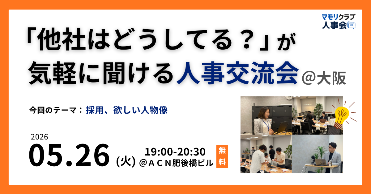 202605/26火19:00~20:30【第17回】人事・採用の「他社はどうしてる?」が気軽に聞ける交流会|2026年5月26日(火)大阪開催